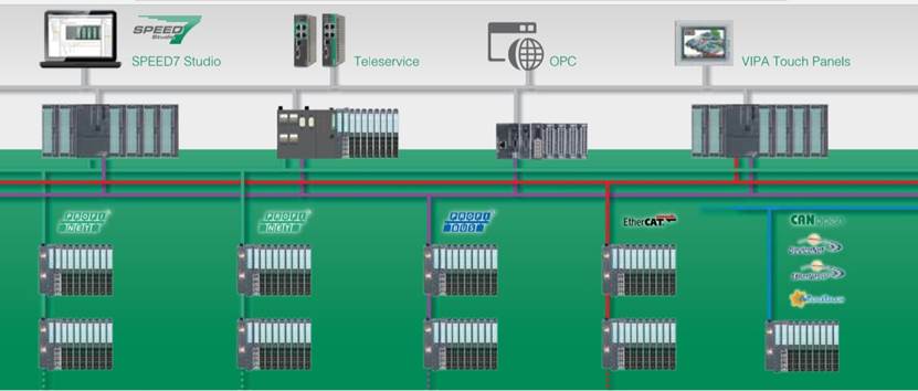 SPEED7技術,使300S系統成為硬件PLC系統之一,組態編程由VIPA提供的可視化軟件平臺SPEED7 studio完成。