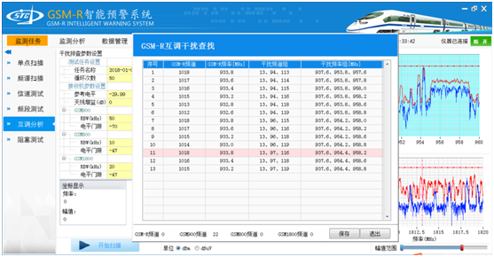 具有成熟的互調(diào)干擾分析和阻塞抑制分析軟件,可根據(jù)現(xiàn)場測試情況自動判斷是否有互調(diào)產(chǎn)物落在GSM-R頻段內(nèi),具備大信號阻塞檢測功能,能排查分析外部強干擾信號對GSM-R上下行頻段造成的阻塞干擾,該功能需求專為GSM-R頻段開發(fā),滿足鐵路沿線環(huán)境下的互調(diào)干擾分析和阻塞干擾分析。
